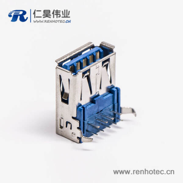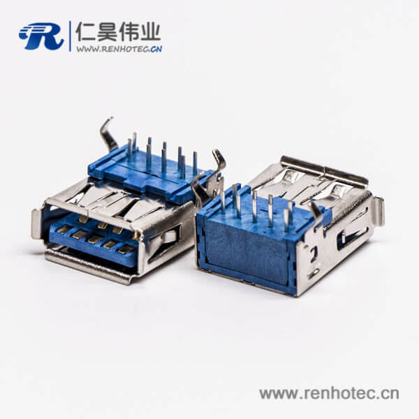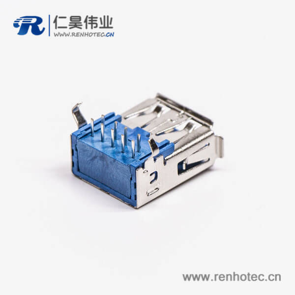 usb3.0a型母头弯式蓝色胶芯弯脚DIP插板