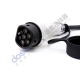 交流枪外形呈圆形的,顶部边缘平坦。初始设计规范的输出功率为3-50kW,用于使用单相(250V)或三相(480V)交流电(AC)为电池电动汽车充电。一般来说,使用单相交流电时,典型的最大功率为32A 7.2 kW,使用三相交流电时为22 kW。插头侧面有一个开口,这样汽车和充电器都可以自动锁定插头。防止不必要的充电中断或电缆被盗。
