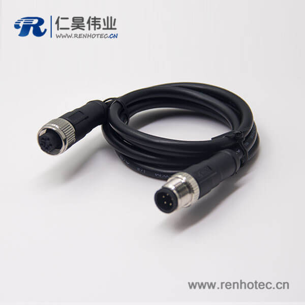 标签:M12,4芯,D编码,线束,公转公, 双边线,直式,焊线,不带屏蔽,3M AWG22
