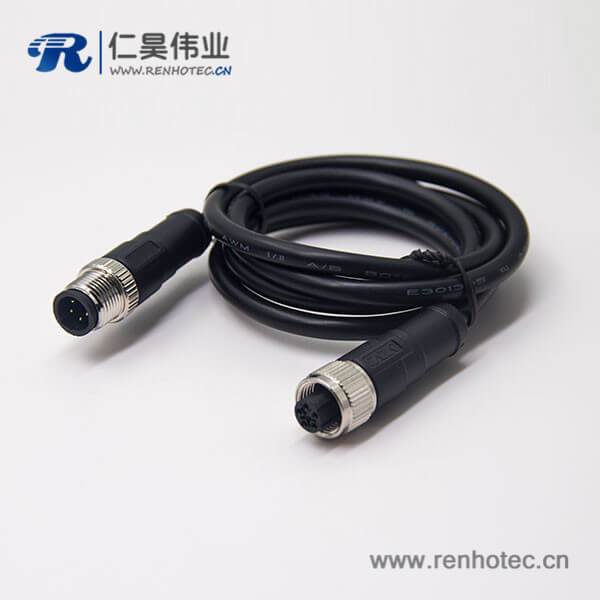 c型螺纹m12 5芯直式电缆公对母插头不带屏蔽传感器1M AWG22
