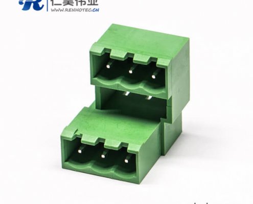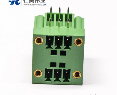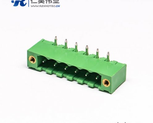 绿色接线端子6芯双排直式穿孔带4个螺丝孔的方形端子
