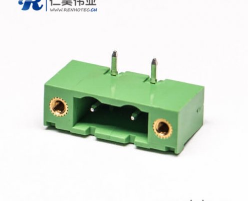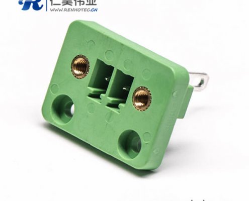插拔式接线端子弯针2芯2孔法兰绿色PCB板端子座