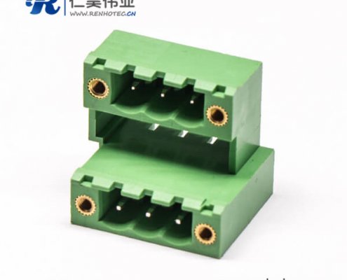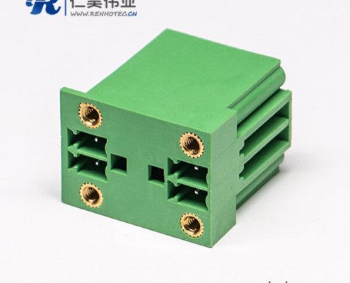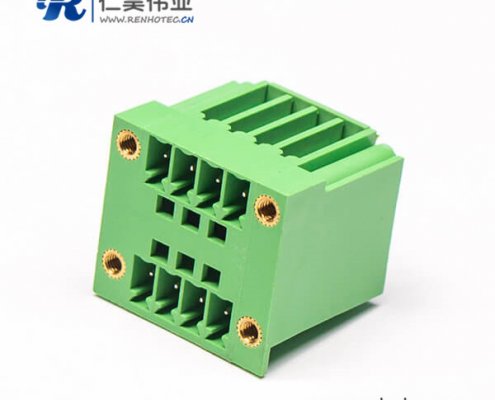 4芯插拔式接线端子方形穿孔式四孔法兰直式绿色端子