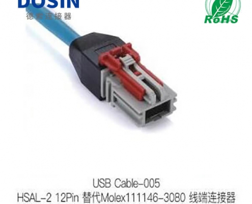 HSAL-212Pin替代Molex111146-3080线端连接器直头公端单线4.6mm非防水B-Coding灰色定制打样