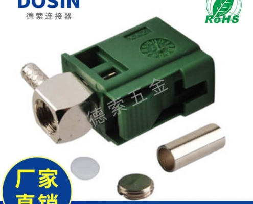 Fakra母头E型弯式绿色压接接线RG174-RG316连接器生产工厂