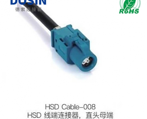 HSD线端连接器直头母端单腔非防水Z-Coding水蓝色生产工厂