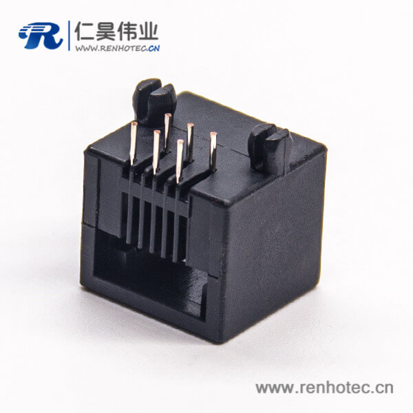 RJ45插座8p8c180度贴板式接PCB板全塑黑色外壳不带屏蔽最先出现在jiechajian.net。