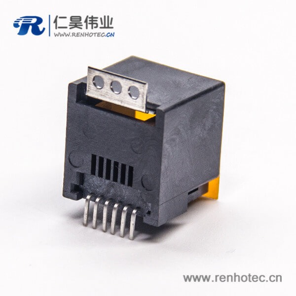 rj12 6p6c贴片接PCB板直式180度单口带盖最先出现在jiechajian.net。