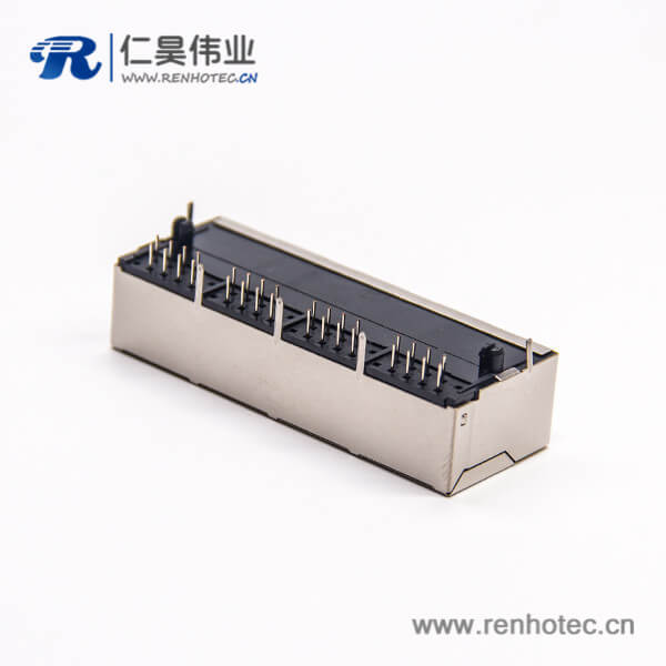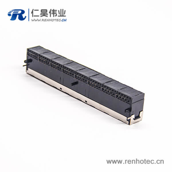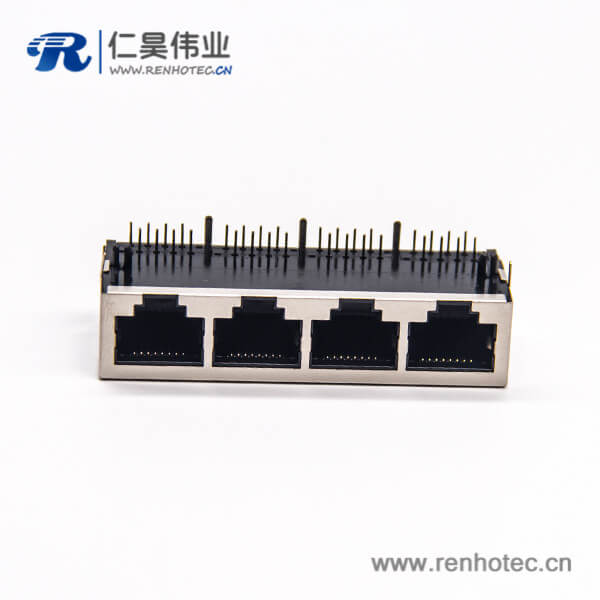 标签:RJ45插座,8P8C,4端口,1*4,弯式90°,触头镀金,插孔,PCB板安装,带屏蔽,不带灯,不带滤波