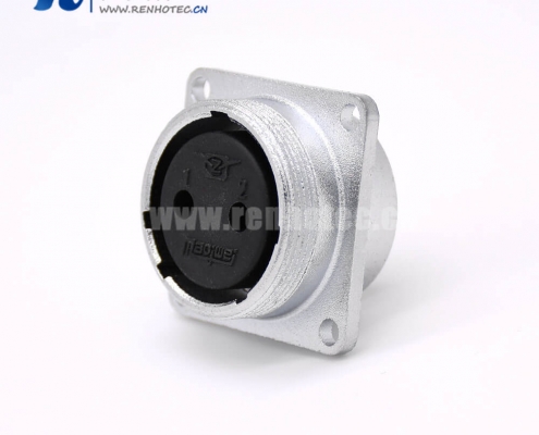 P20母头2芯直式插座方形四孔法兰安装焊杯接线