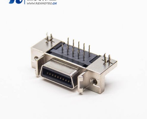 SCSI母座接插件14pin弯式90度插板式带鱼叉脚接PCB板