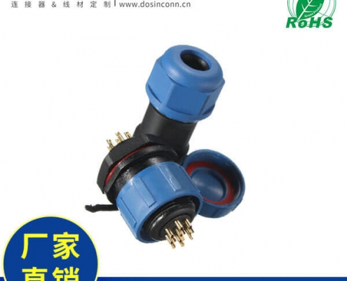 防水塑胶航空插头SP17蓝色IP68-5芯定制打样