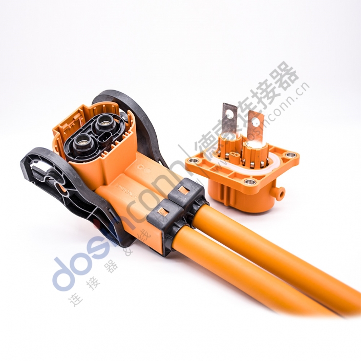 新能源汽车连接器HVIL系列2芯8mm塑胶200A直型插头+插座接6.5mm通孔线厂商