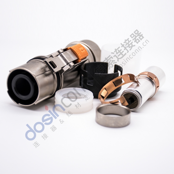 高压互锁连接器由带有卡槽的插头扳手、带有导向槽的二次锁和高压互锁微动开关组成互锁机构。新能源行业(主要是汽车)对接插件的行业应用要求比较高,高压互锁结构避免了高压接插件开断过程中产生电弧的现象,延长了互锁机构的使用寿命,有效防止了误操作造成的触电危险,确保维修安全。