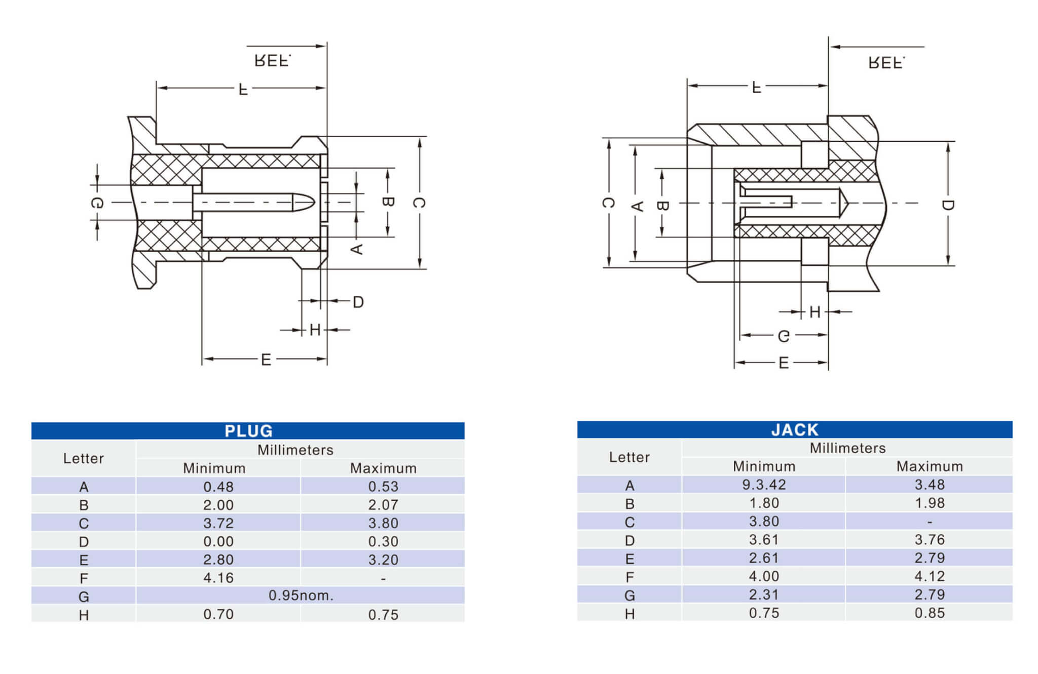 - 中心接触电阻: ≦ 5.0 mΩ (Milliohms max.)