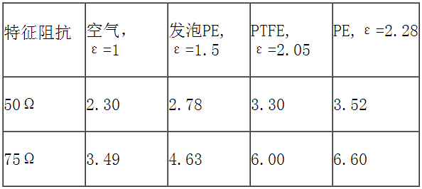 A, 特征阻抗: 由传输线的电容和电感决定的传输线的一种固有特征,反映了电场和磁场在传输线的分布状况,只要传输线的介质是均匀的,特征阻抗是一个常数。在波传输过程中,E/H 是不变的。传输线本身决定了它的特性阻抗,而且特性阻抗在传输线上处处相同。在同轴线缆或同轴接插件,特征阻抗由外导体的内径,内导体的外径及内外导体间的介质的介电常数决定,存在如下的量化关系。