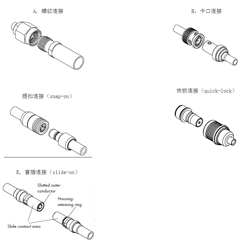 3, 射频同轴接插件与线缆或电路板的安装方式