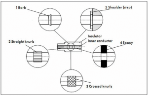 A, 倒刺;B,直纹;C,网纹;D,台阶;E,灌胶(环氧树脂)