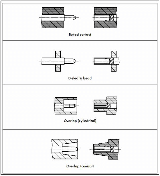这些新开发的毫米波同轴接插件有几个明显的特点。首先是接插件的工作频率尽量接近相同规格空气同轴线的截止频率。1989年10月颁布的IEEE287修正草案中规定的各种传输线的频率范围。这就决定了接插件内部尽量采用空气同轴式结构,对不可避免的介质支撑(绝缘子)和内导体结构带来的影响要设法降低。其次是内导体几乎都采用针孔式(有极性)结构,这是因为在小尺寸的情况下采用平面接点(无极性)会造成很多困难,因此,IEEE287新标准草案中规定允许使用有极性的内、外导体结构,但必须要保证连接的性能与接插件配对连接无关,发展的事实证明,这一要求是能够实现的。再其次就是新发展的产品都保持了和以前相关产品有良好的兼容性,像K型能保持与3.5,SMA的配对,V型能保持与1.85,2.4的配对。