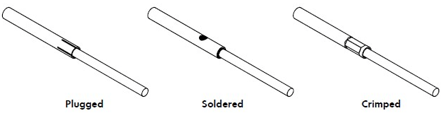 有4种,1, 卷曲(crimping); 2, clamping(压紧); 3, 焊接(soldering); 4,免焊(solderless) 如下图: