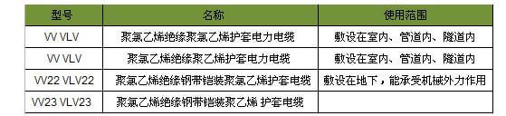 R-连接用软电缆(电线),软结构。 V-聚氯乙烯绝缘或护套。 B-平型(扁形)。 S-双绞型。A-镀锡或镀银。 F-耐高温。P-编织屏蔽,P2-铜带屏蔽,P22-钢带铠装;Y—预制型、一般省略,或聚烯烃护套。 FD—产品类别代号,指分支电缆,建设部标准用FZ表示。YJ—交联聚乙烯绝缘;ZR—阻燃型;ZRK—产品类别代号,指阻燃型控制电缆;NH—耐火型;WDZ—无卤低烟阻燃型;WDN—无卤低烟耐火型;ZQ—纸绝缘电缆;H-橡套 ; CY-充汕; 0-无; F-氯丁橡皮护套;