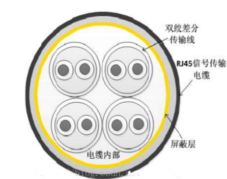 (2)?内部组线时,差分电缆采用双绞传输,双绞绞距一般为信号电缆线径的3倍;组线方式如上图所示: