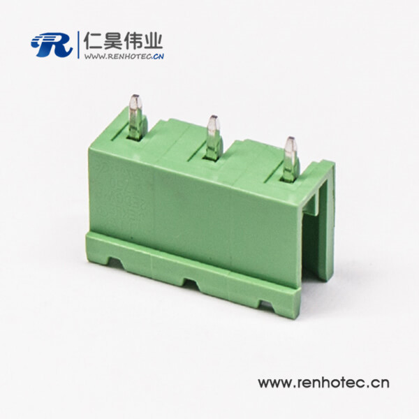 插拔式接线端子弯针3芯弯式两侧实心绿色端子穿孔式