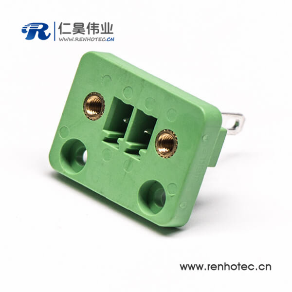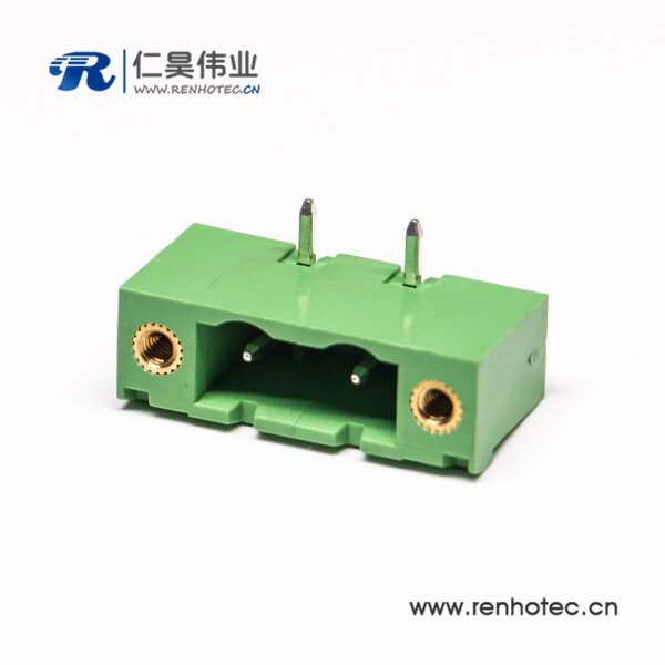 插拔式接线端子弯针2芯2孔法兰绿色PCB板端子座