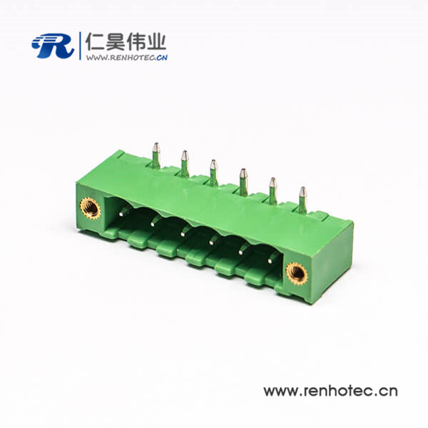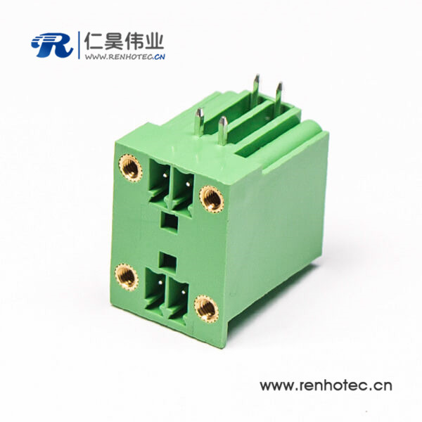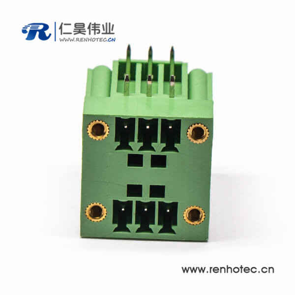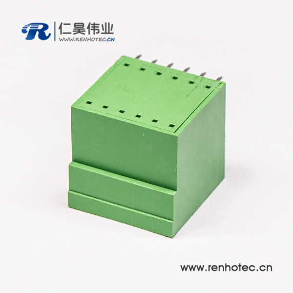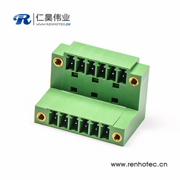 绿色接线端子6芯双排直式穿孔带4个螺丝孔的方形端子