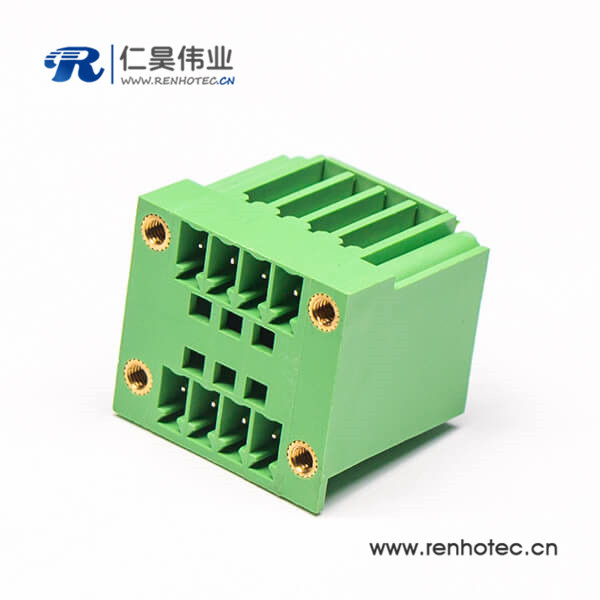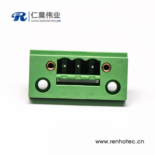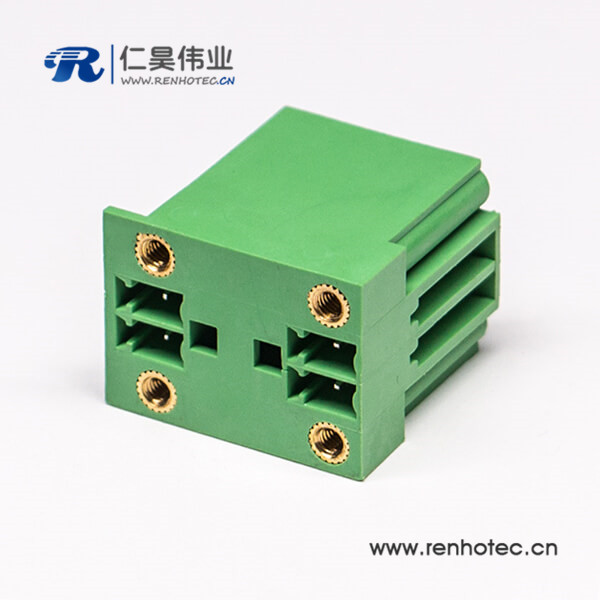 4芯插拔式接线端子方形穿孔式四孔法兰直式绿色端子