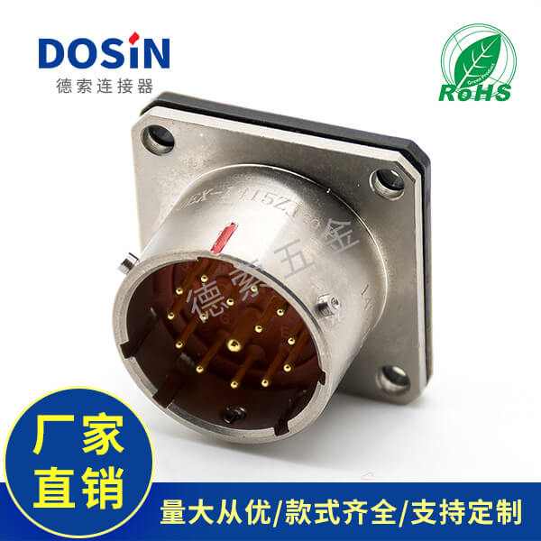法兰安装连接器Y50EX直式公插座15芯焊杯镀镍定制打样