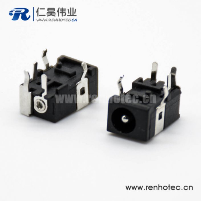 DC插座3脚立式公插孔贴片焊接弯式4.4*1.65不带屏蔽电源接插件